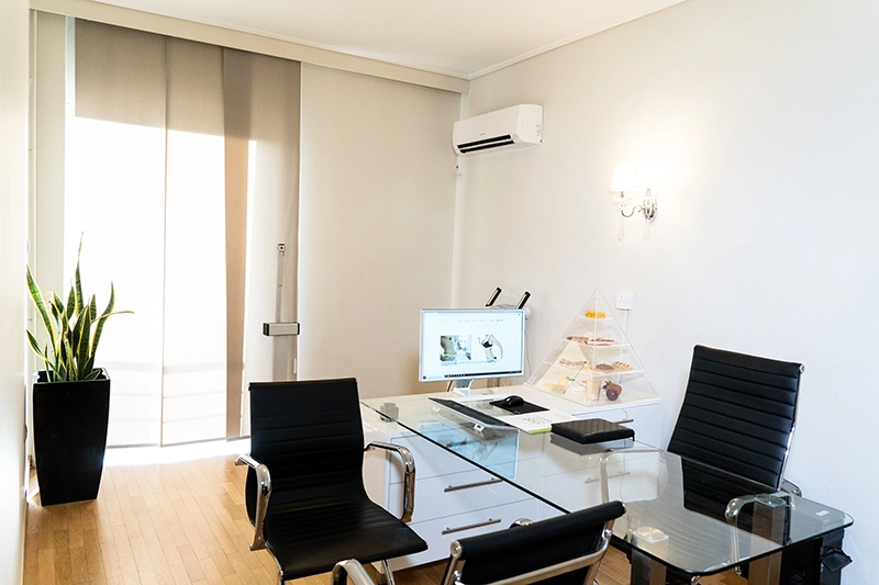 - Το ιδιωτικό του γραφείο είναι στην περιοχή της Γλυφάδας.